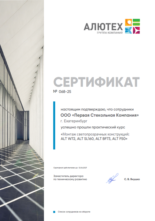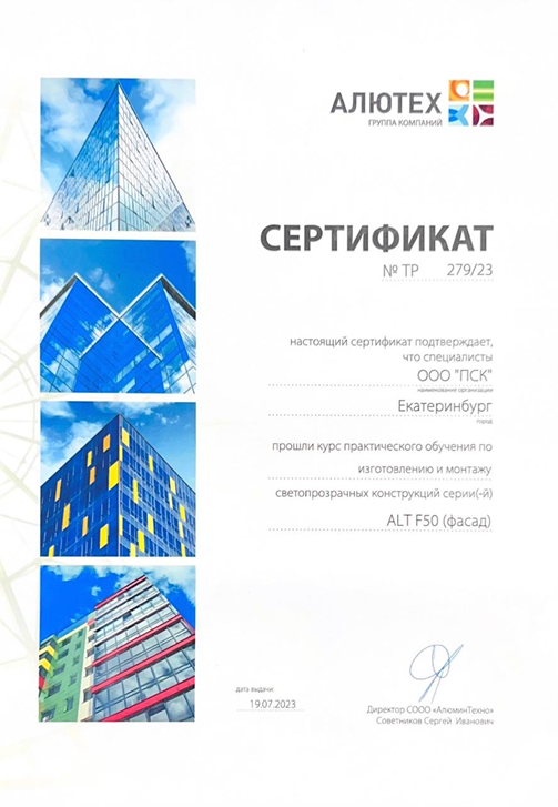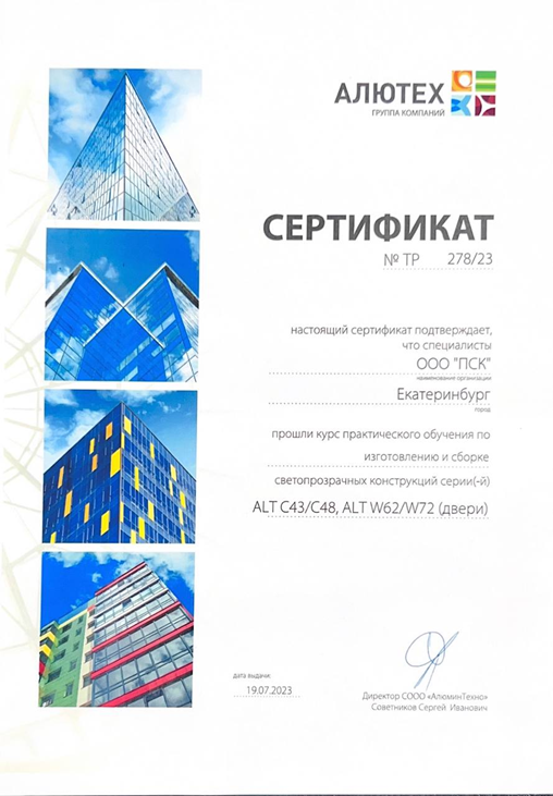 1. Сертификат официального представителя ГК ALUTECH